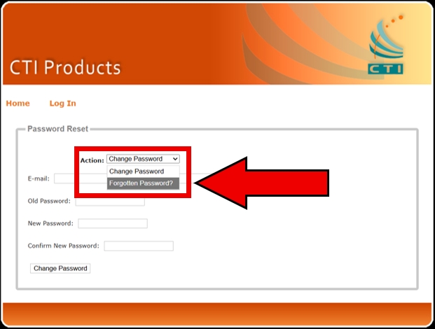 - From the Action dropown, choose Forgotten Password.